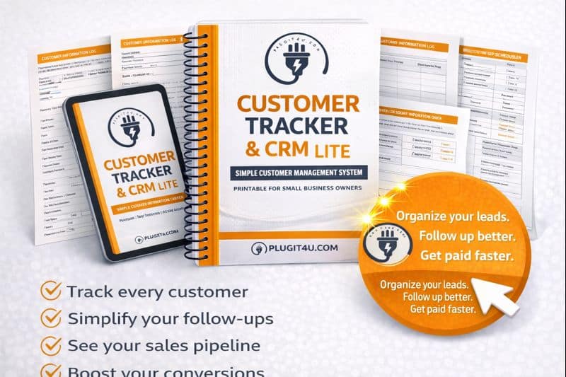 The Customer Tracker & CRM Lite gives you a clear, printable system to manage your customers and leads without stress, subscriptions, or tech headaches.
